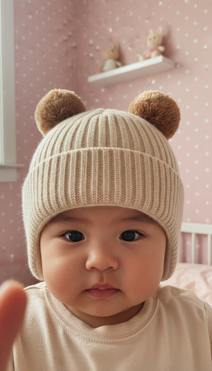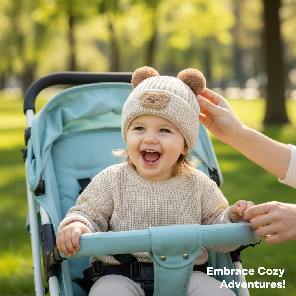 Transform everyday strolls into a playful adventure with our charming bear-ear accents. These high-quality knit protrusions add a dash of fun, engaging your baby’s imagination while keeping them warm. Covered ears and snug edges mean cozy comfort, and parents love the giggles that follow!