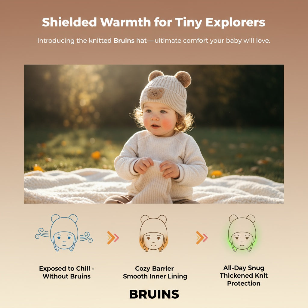 Our Bruins hat features a plush, thickened knit exterior paired with a smooth acrylic-blend lining. This thoughtful combination ensures your baby’s head and ears stay shielded from chilly winds. The elasticized edge offers a secure fit that moves with your little explorer, so they stay comfortable from sunrise to sunset.
